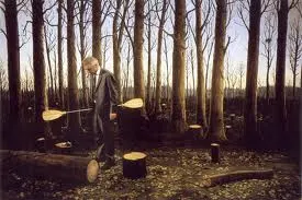 “Hocks has a flair for the absurd. In his large, hand-tinted photographs, he appears as a proper bourgeois, dressed immaculately in suit, tie, and white shirt, in a variety of deceptively plain stage settings. Seemingly unaffected by his surreal situation, he impassively holds his own.” —Donald Kuspit, critic
