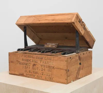 Vivienne Koorland (South African, born 1957), Mute Piano, No. 2 (Dedicated to My Grandfather, Rafael), 2013, wood, staples, screws, oil, pigment, and glue, 18 x 21 x 15 in. Schwartz Art Collection, Harvard Business School, 2015.10.