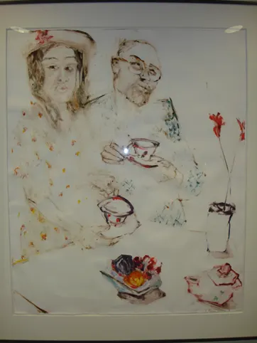 Naomi Ribner (American), Tea for Two IV, 1990, monotype, 42 1/2 x 35 in. Schwartz Art Collection, Harvard Business School, 1995.13.