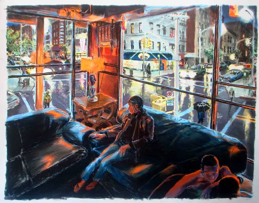 James Romberger (American, born 1958), Marguerite in 2A, Night, 2002, pastel on paper, 40 x 50 1/4 in. Schwartz Art Collection, Harvard Business School, 2002.12.